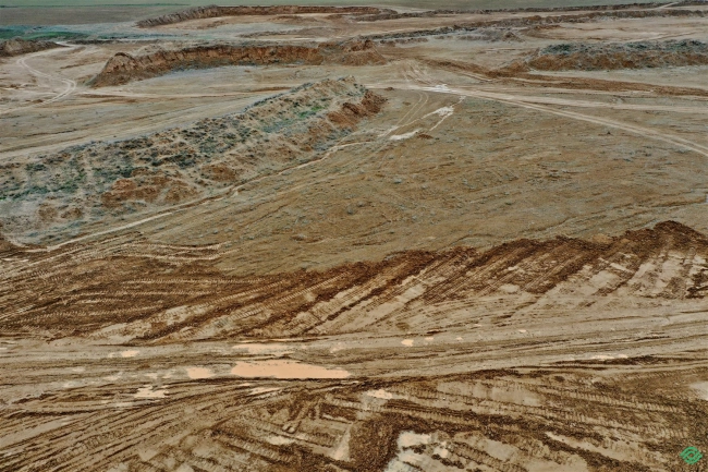 Добыча земляного грунта. Нет рекультивации. Карьер завода Южно Кыргызский Цемент.